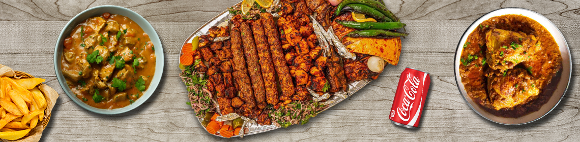 Meal for 2. Veg and Chicken pakoras Lamb Karahi & Chicken tikka chasing Pilau rice & plain naan Food was excellent, plenty meat, good quality, and quick delivery